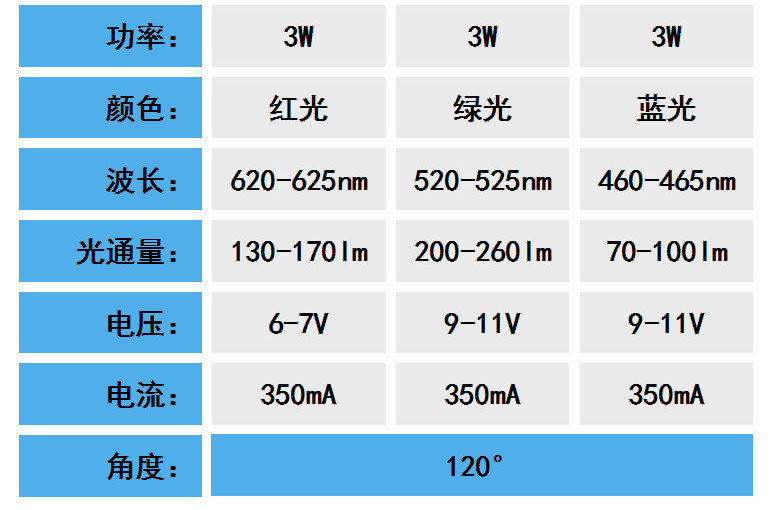 适用范围:舞台灯光,汽车照明,景观照明等广泛用途