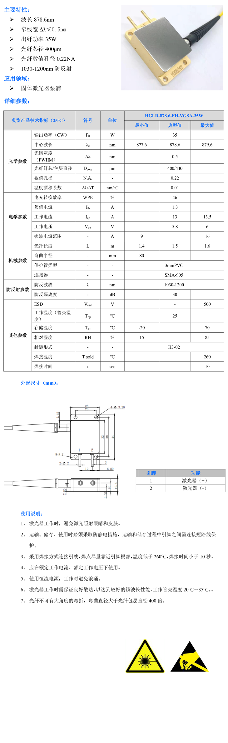 产品型号:TM-878.6nm-35W-FH-A435-12