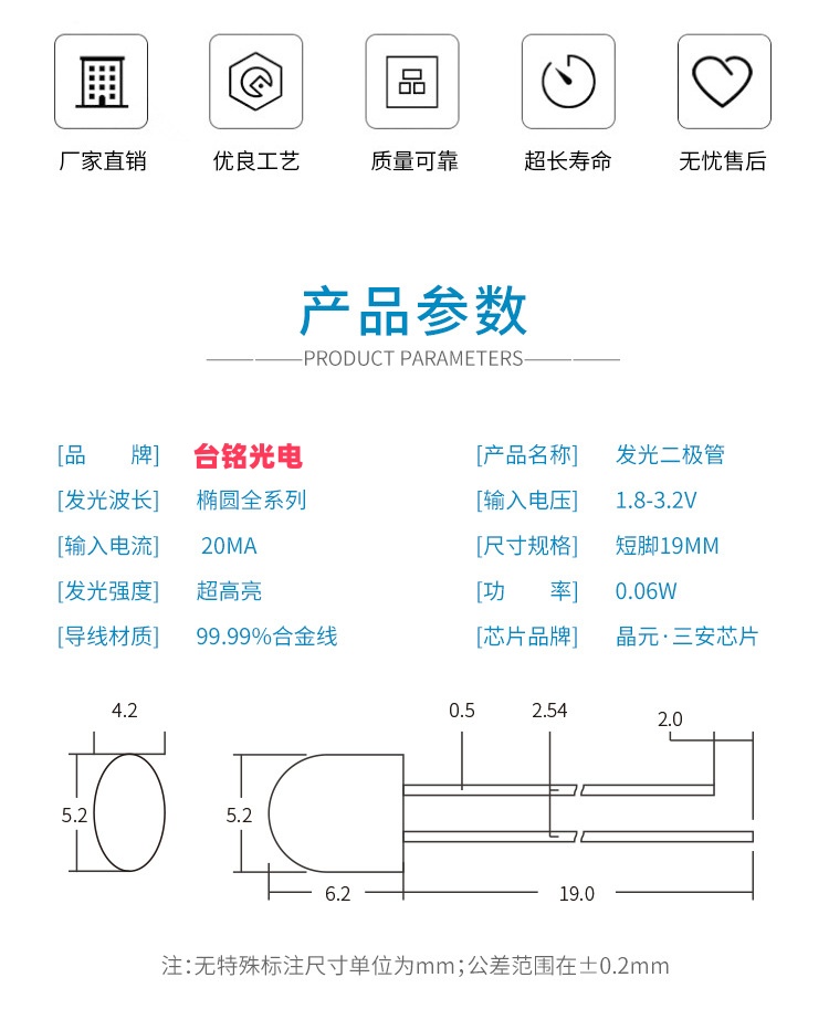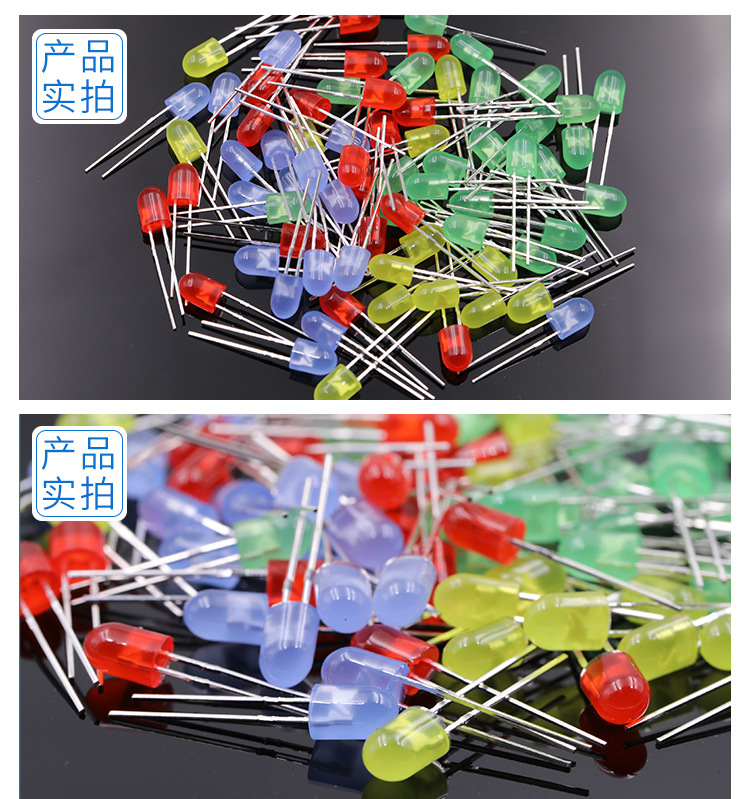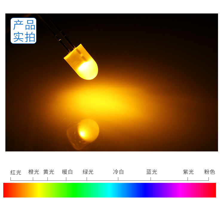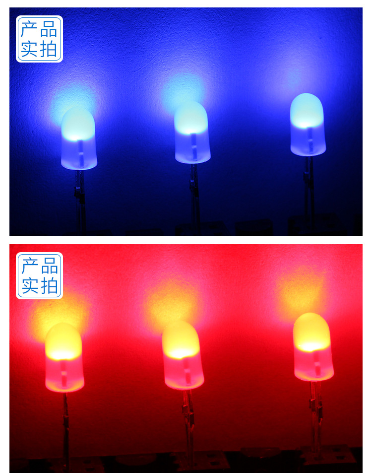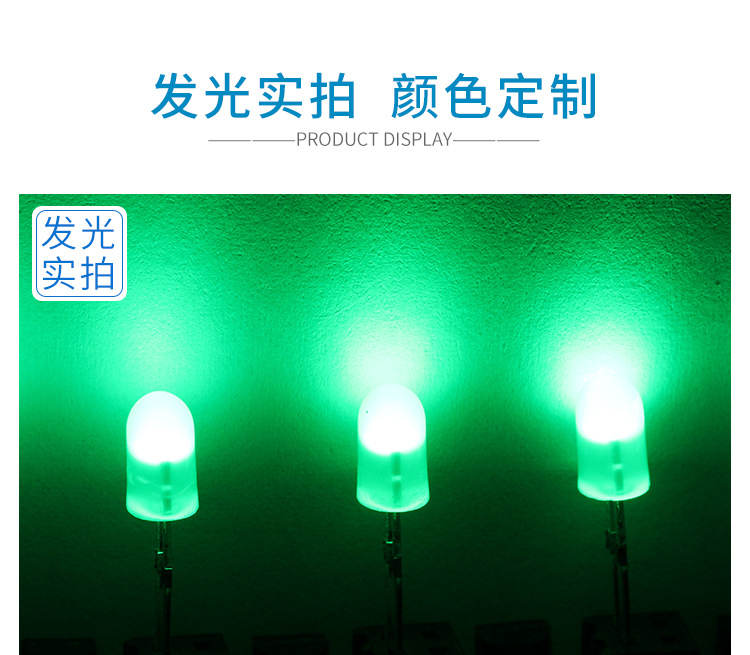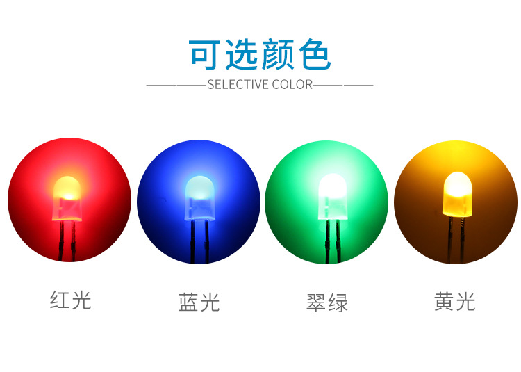 确认参数:电压、波长、亮度(mcd)、视角(如120°)、引脚类型(直插/贴片)。