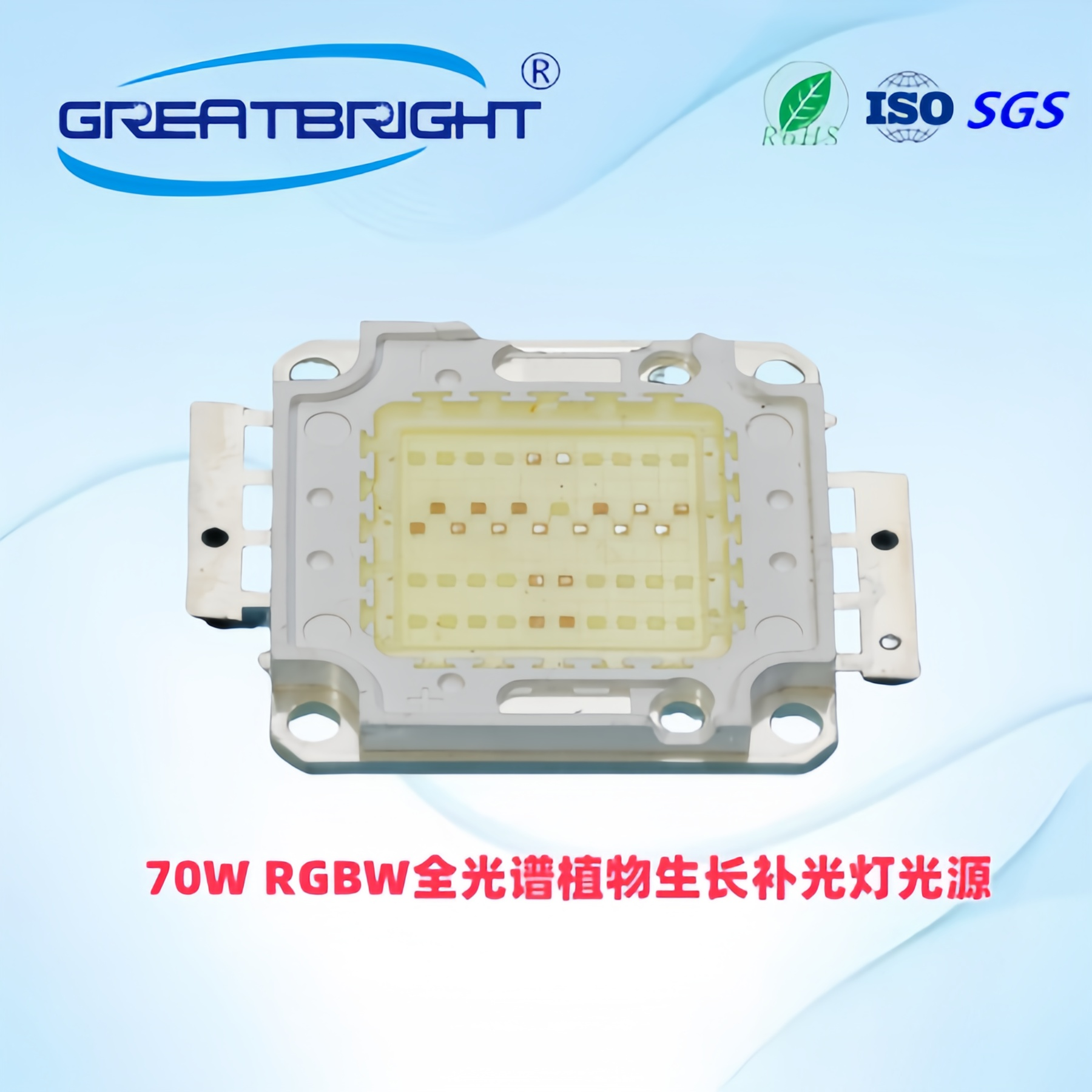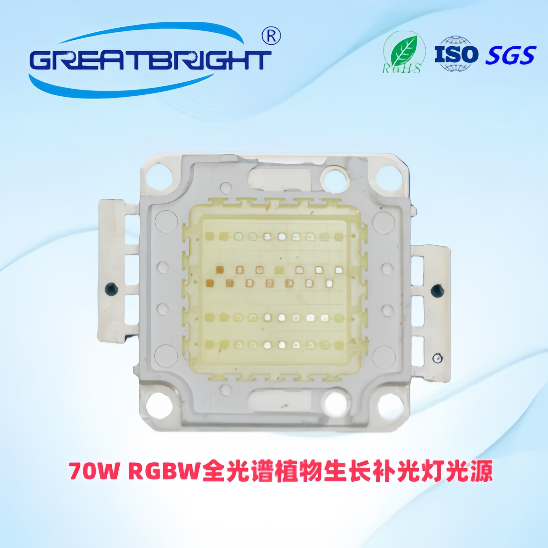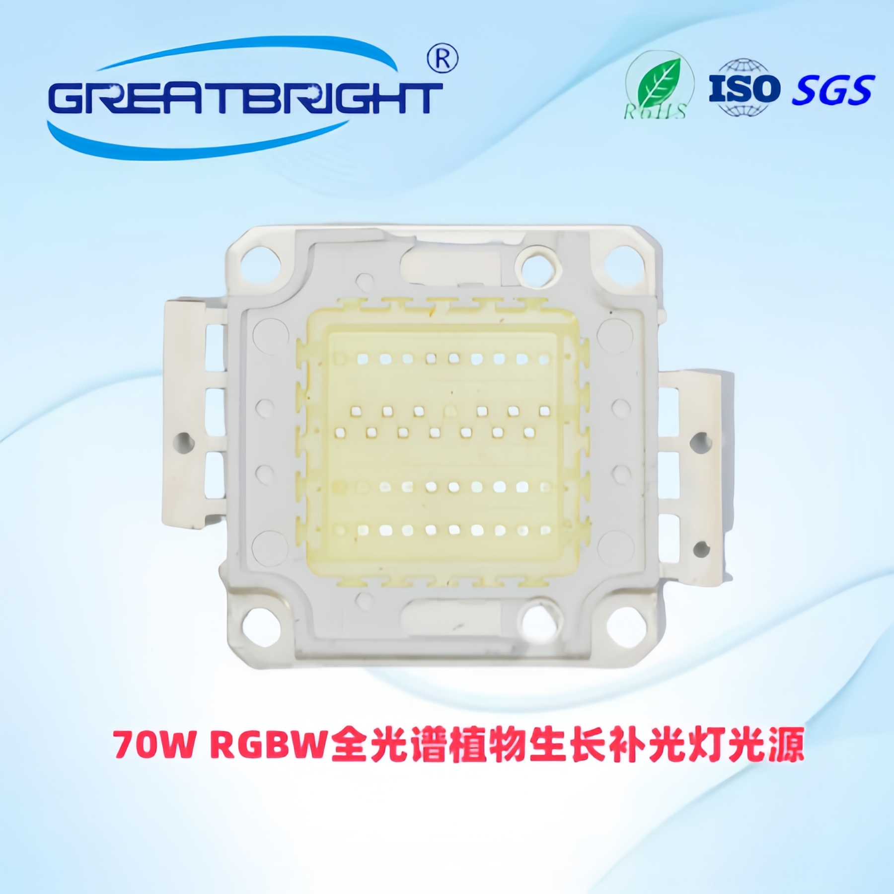 说明:70W全光谱植物生长集成暴藻显色鱼缸灯 光源,主要用于大棚或室内植物生长补光,