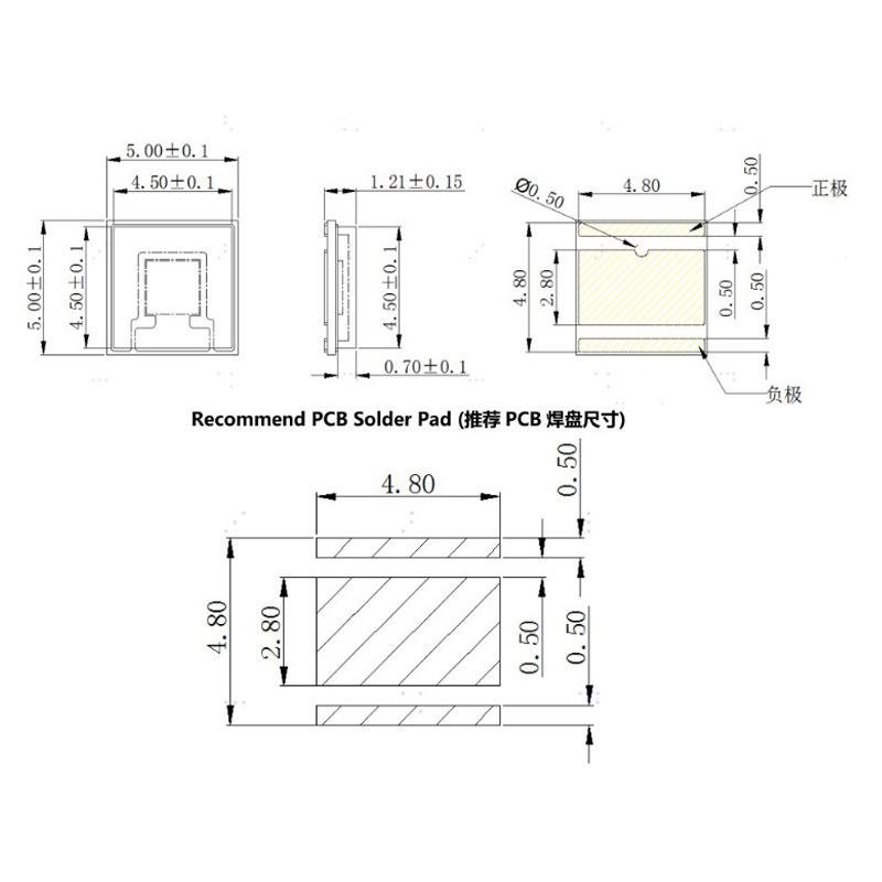 为了确保LED 光电性能,请保持LED 发光区表面清洁,避免手指印或其他异物覆盖。