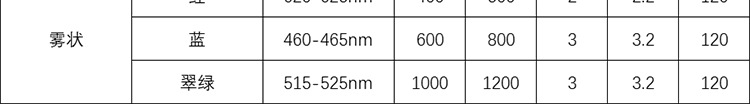 产品特征:光强高、低衰减、功耗低、高效能、超长寿命、多种色彩可选择