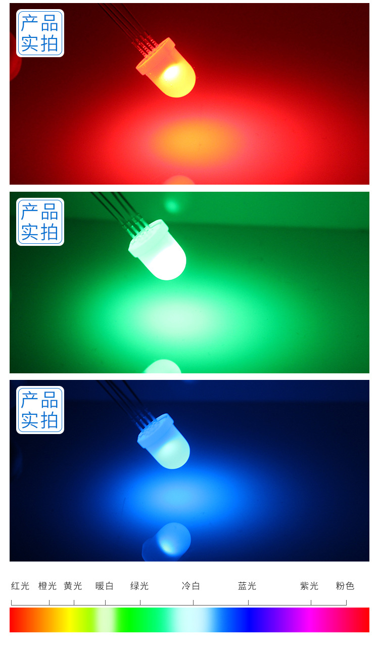 F8/8mm圆头四脚全彩RGB高亮灯珠共阴共阳直插LED灯珠