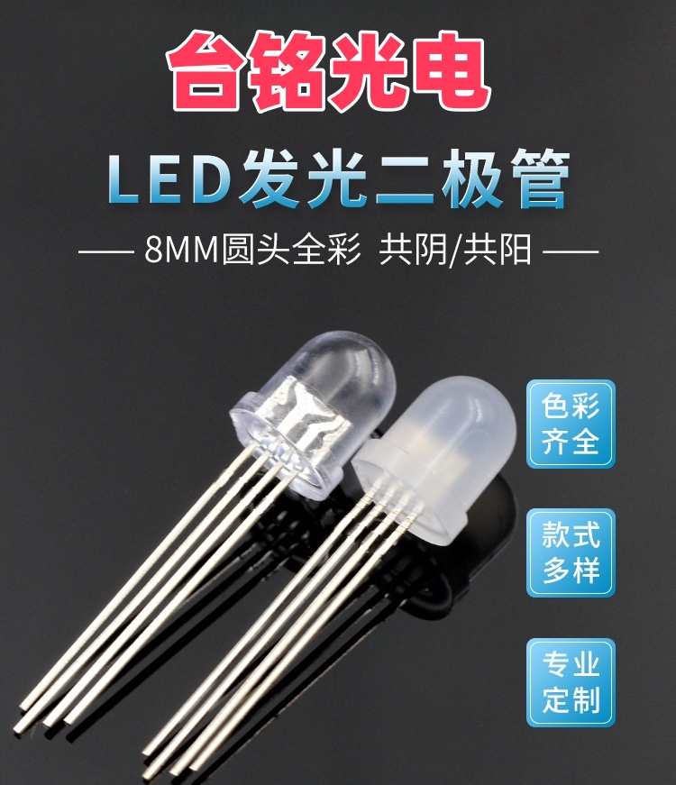 以下是关于 AG恒峰光电F8/8mm圆头四脚全彩RGB高亮灯珠共阴共阳直插LED灯珠 的详细信息整理,供您参考: