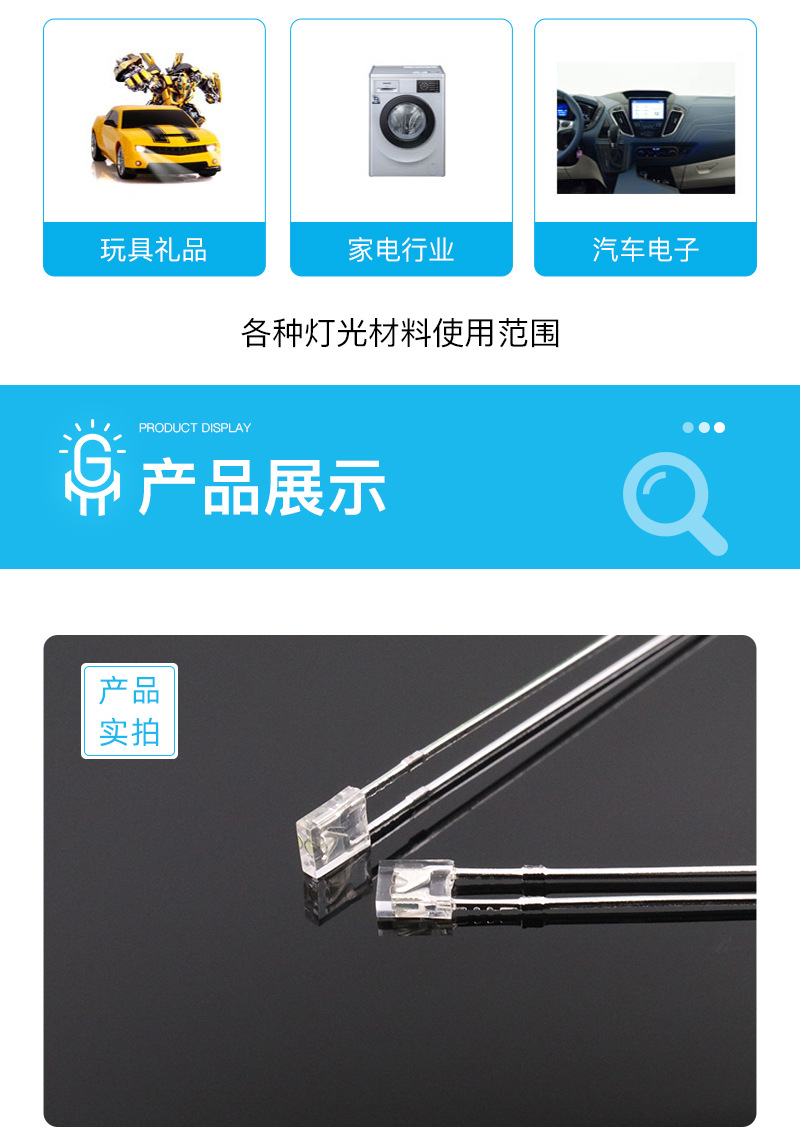 (Dual In-Line Package)LED,适用于需要 高透光性、长引脚焊接稳定性 的场景。以下是详细用途分析及典型应用:
