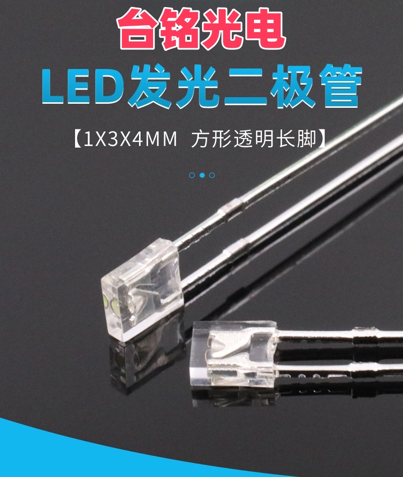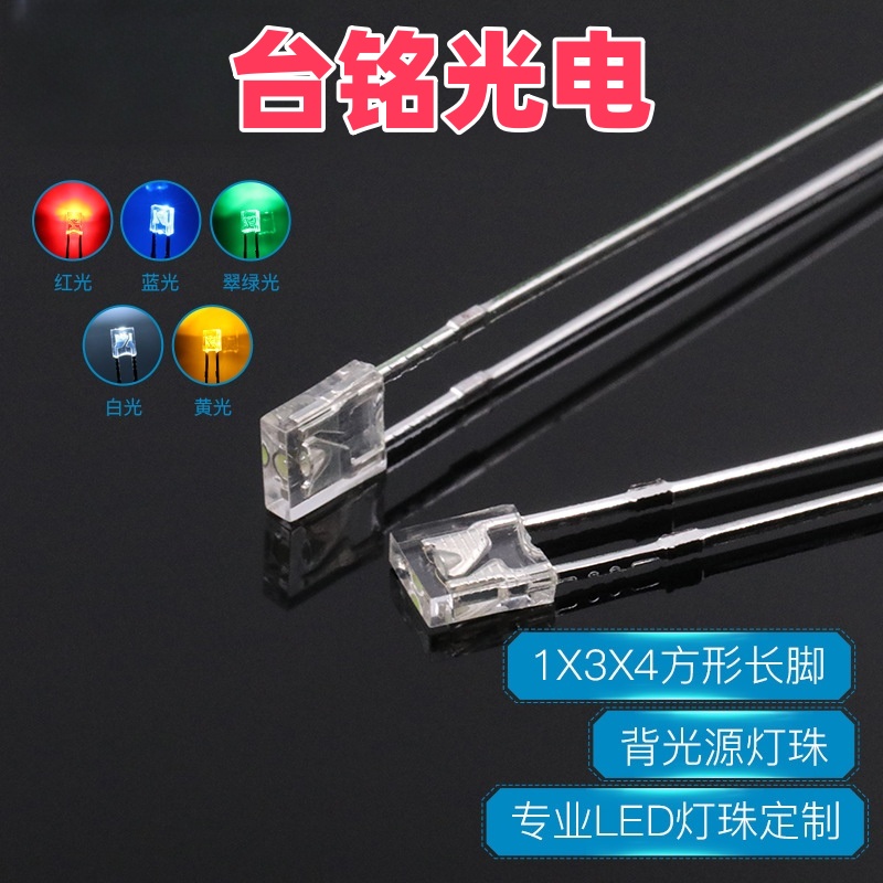 AG恒峰光电1×3×4mm 方形长脚透明直插LED灯珠(白光、蓝光、红光、翠绿光、黄光) 是一种小型化、高精度的 DIP